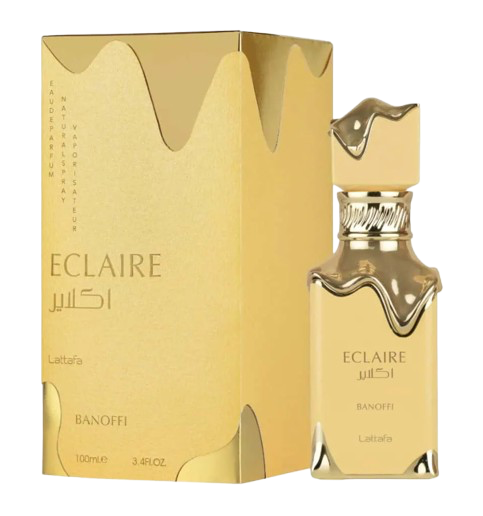 Envio según tu país. Gratis en pedidos desde 70€Eclaire Banoffi – Lattafa: Fragancia unisex dulce y envolvente con notas de plátano, dulce de leche, nata montada, vainilla, praliné, galleta y almizcle. Ideal para quienes buscan una fragancia dulce, sofisticada y duradera
